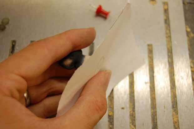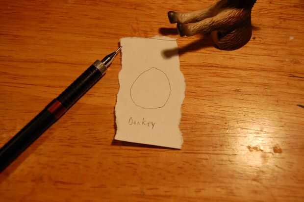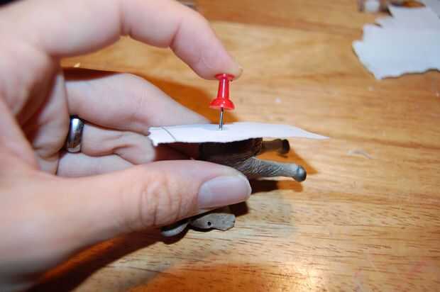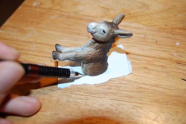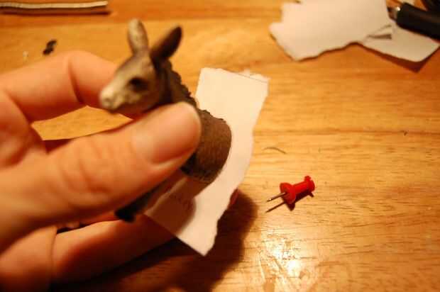 Realinee la mitad animal con su contorno (ser precisos!) y darle la vuelta. Usted debe ser capaz de ver los dos orificios. Pegar un pin a través de cada agujero, haciendo marcas en la estatuilla. Quitar el contorno y presione el pasador más profundas si las marcas no son lo suficientemente visibles.