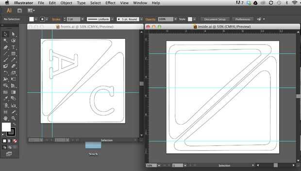Hice los contornos para los cortes en illustrator. Un Consejo aquí sería definir el tamaño de la Junta de arte en el tamaño de la madera que se trabaja con. Además, cuando usted pone en el texto Asegúrese de convertir el texto en contornos. Mi diseño llama para cortes básicos 3: corta el frente con la letra, los interiores para crear la cavidad de la lámpara y la parte posterior. Terminé con 3 archivos con estos nombres. Al crear los archivos para el cortador del laser, exportado a un archivo .dxf directamente desde illustrator.