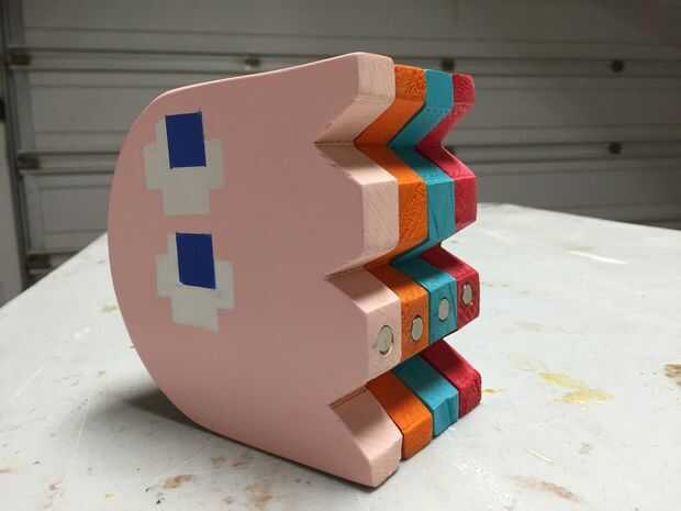Taladré un agujero poco profundo en la parte inferior de los fantasmas y Pac-man para agregar un imán para que las piezas se sentarían firmemente sobre los soportes. Usé de epoxy para fijar los imanes. Luego en la base I pretaladrados, avellanados y atornillan algunos tornillos para los imanes unir a. Me aseguré de hacer todos los imanes y los tornillos al ras de la superficie estaba adjuntarlos demasiado.