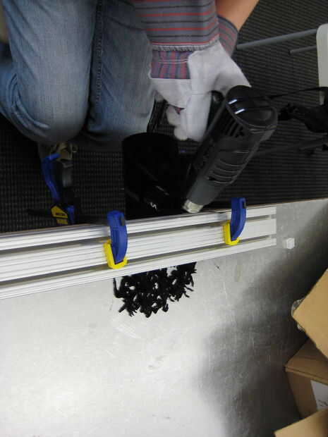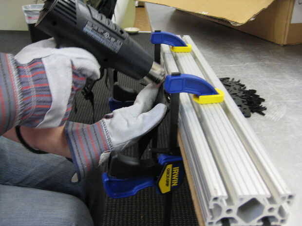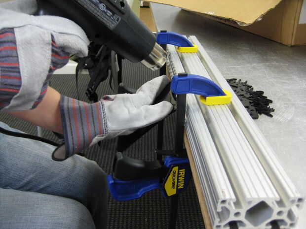 Ir y venir a través de la articulación donde el acrílico se fija con la pistola de calor hasta que lo veas empieza a decaer visiblemente. Lentamente, cuidadosamente y uniformemente comience a doblar esta superficie a un ángulo de 90 grados.