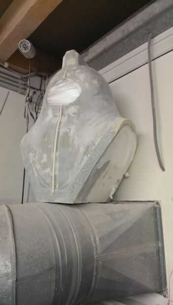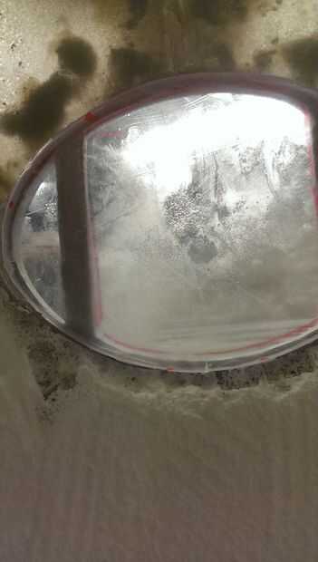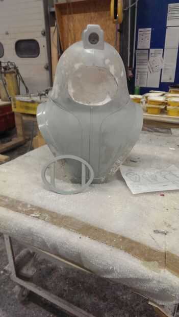 Después de todo bien se cura después de una buena hora, he fijado apagado para hacer la ventana de visualización. Antes de una hoja laminada con un espesor de 11mm. Después de dibujar el casco luego he hecho a ojo. Con un flex de diamante y una muela de matriz. (Vea la figura 11, 12)