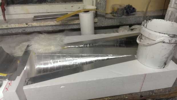 Desafortunadamente no hice de casco de espuma de poliestireno fotos pero la preparación para el laminado de la transición es fácil de ver cómo ve en el estado crudo.