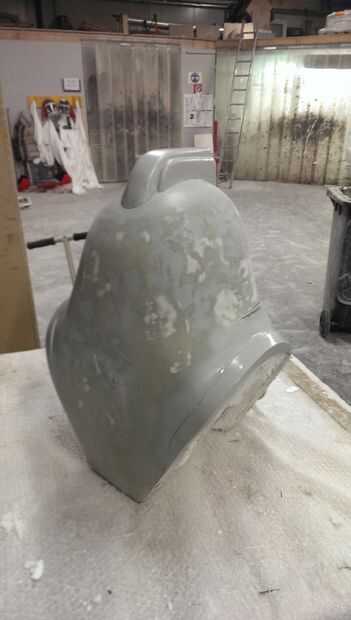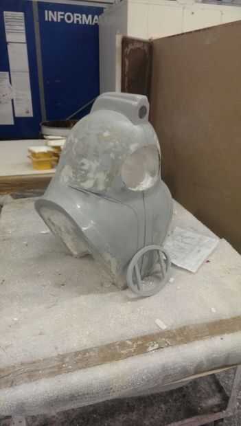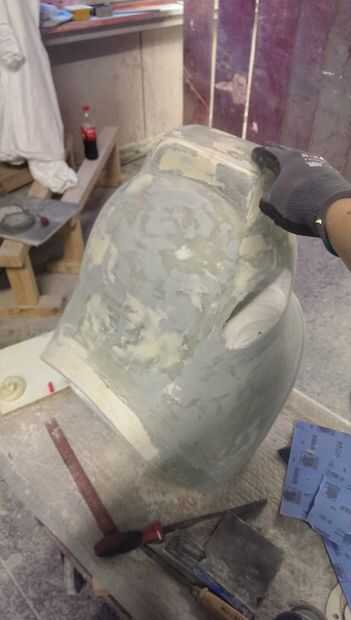El casco fue lijar primero con 240 razones para allanar los baches más grandes y de hecho la razón para el aerosol aplicar el relleno de los agujeros un poco más pequeños y bien sellados. (Ver figura 7-A / B).