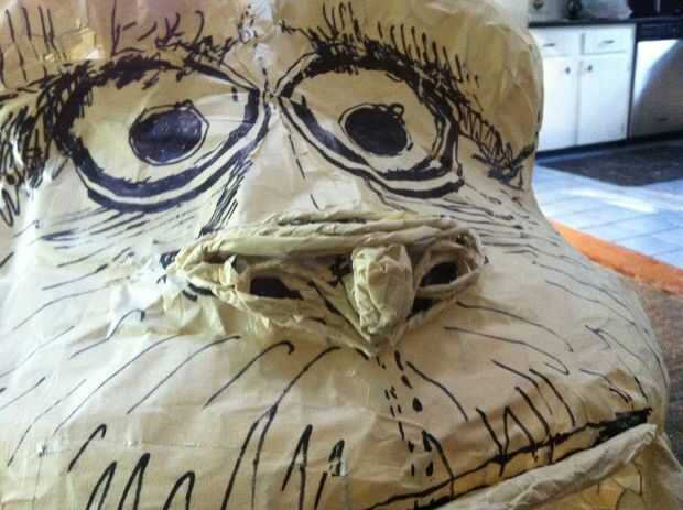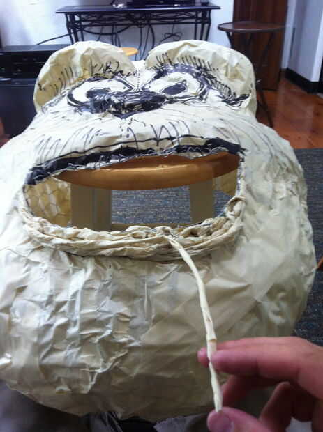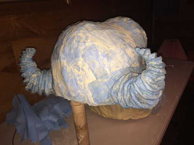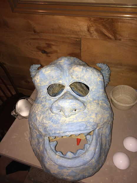 10. hacer la mezcla de mache. Usé 2 partes de agua a 1 parte harina. He añadido unos arroja a chorros de pegamento para madera para cada parte de harina. Mezcle y aplique para cubrir toda la cabeza.