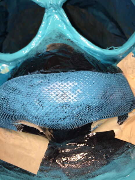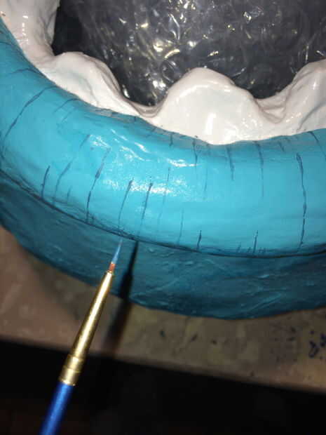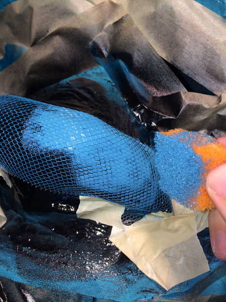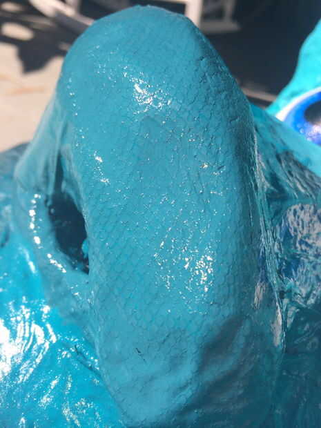 13. antes de pintar la nariz cubierta con una red de los pescados o de la pantalla así que una vez se seque dará la textura de escamas.