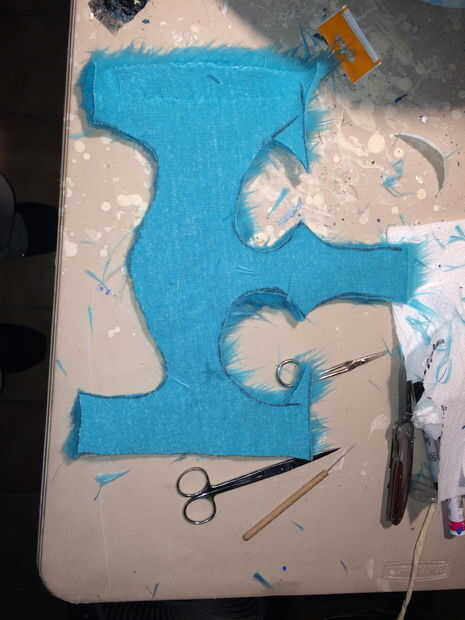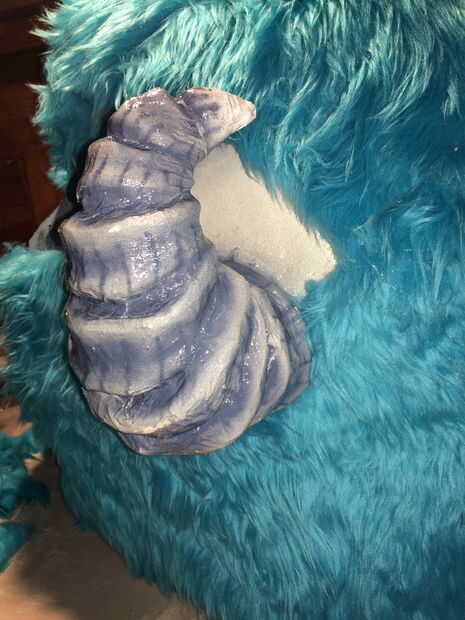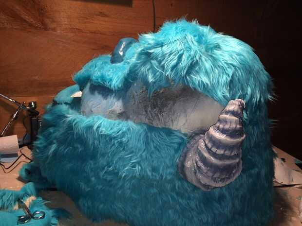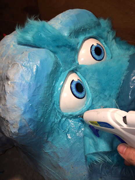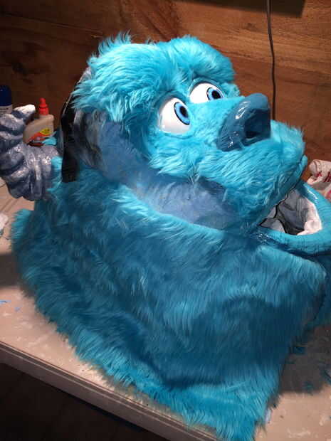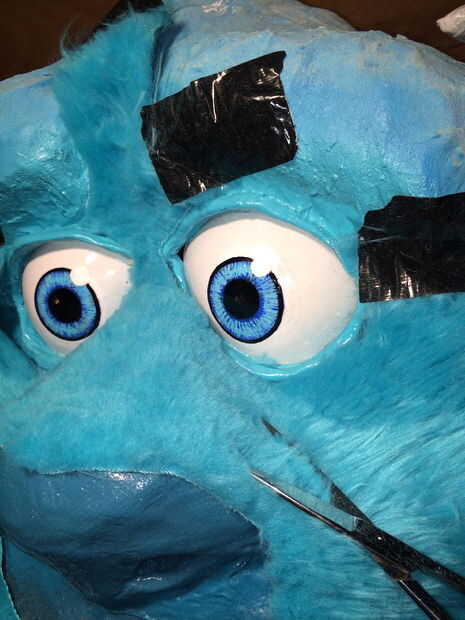 3. puesto que se trata de piel de pelo largo necesitará un corte de pelo a Sulley. su pelaje es corto en su nariz. Utilizando tijera corte la piel igual que alguien daría un corte de pelo. el centro del puente de la nariz es la más corta y poco a poco consigue más de largo como usted hacia sus huesos de la mejilla. De la forma cónica la piel en consecuencia.