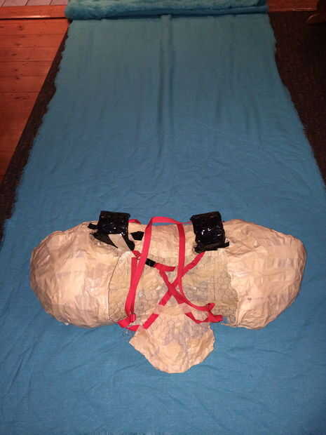 2. corte hacia fuera y coser los lados, deje suficiente espacio para los brazos y hombros para recorrer.