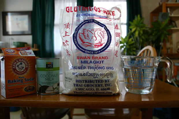 -4 tazas de arroz glutinoso (también conocido como arroz o arroz dulce, puede encontrarse en tiendas de comestibles asiáticos o en el pasillo de Asia)