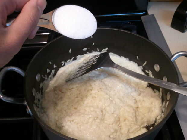 Cocinar el arroz hasta que esté medio cocida. (Debe tener la textura de arroz poco cocido o arroz no cocinado con suficiente agua)