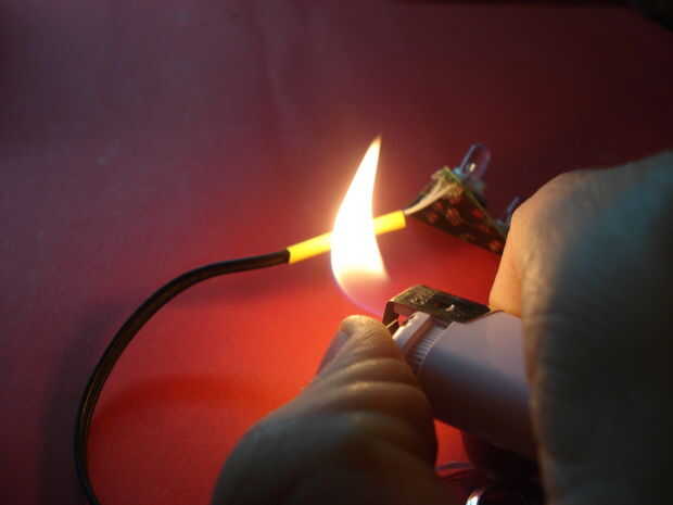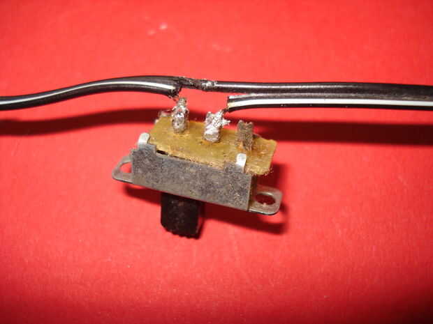 ---Ahora cortar uno de los cables y un interruptor para la soldadura. Esto lo hice como engancharía el tablero del LED a la pieza de ventana/plexiglás y reflector, por lo que el interruptor de sumergirse en él no sería accesible.
