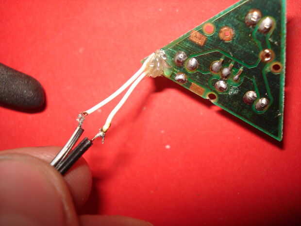 ---Soldar dos cables a la placa PCB que los LED son adjuntas como en la imagen.