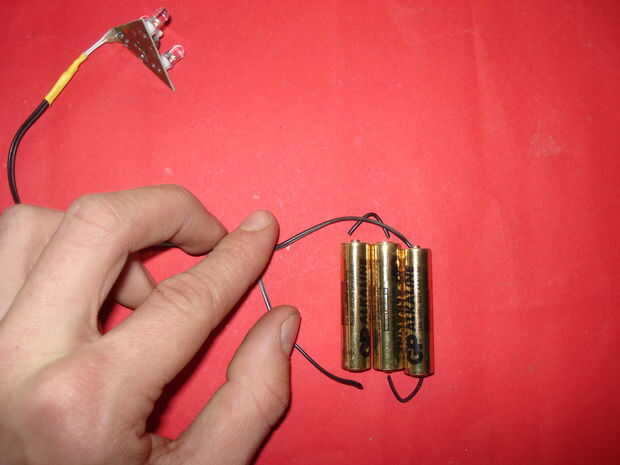 ---Ahora conecte las pilas AAA en serie encintado de juntas y la conexión con cables. Si tiene un soporte de la batería pequeña que sería mejor, pero no tengo uno.