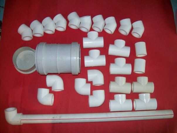 Las piezas se hacen del plástico del PVC y el tubo es de 2,5 cm de diámetro.