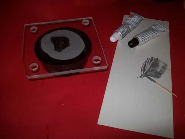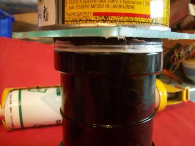 Así que utilicé una tapa de tubo de pvc con un poco de plexiglás con orificios para los tornillos perforados pegados a la tapa con resina epóxica. Yo también manchada de sillicone pegamento alrededor de las fronteras entre la tapa de PVC y el plexiglás para asegurarse de que no podía separar. (como se ve en la segunda foto)