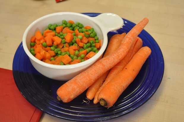 Si los guisantes y las zanahorias no se cocinan, rápidamente cocerlos durante unos minutos en agua en la estufa, luego ponga a un lado que se enfríe.
