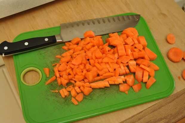 Trocear las zanahorias.