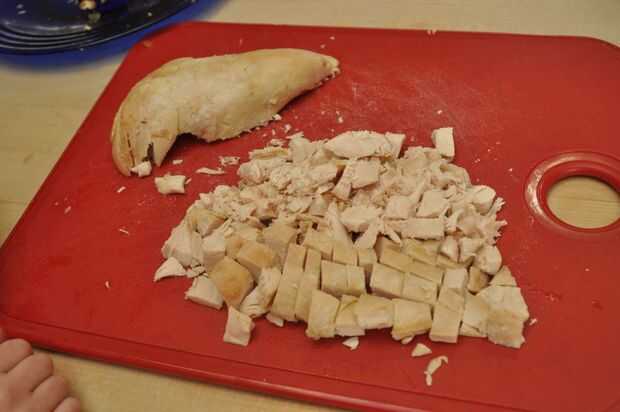 - Pollo cocido, cortado en dados, en cubos o rallado (aproximadamente 1 taza)