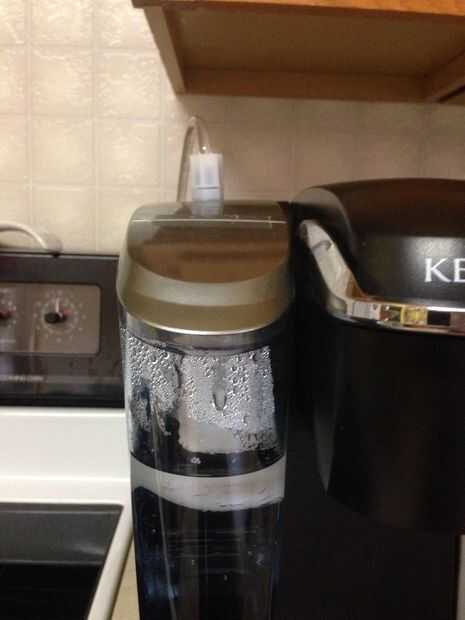 Cansado de llenar mi tanque de Keurig casi a diario. El surtidor de agua filtrada en mi fregadero tomó demasiado tiempo para llenar el tanque, entonces existe la posibilidad de derrame o caída del tanque colocando en la cafetera. Puesto que ya tenía una línea agua de mi tanque del RO a mi máquina de hacer hielo y el fregadero, cortó la línea y añade una línea a mi cafetera Keurig (modelo B75 platino) y poner una válvula de flotador en el extremo, así que cuando el agua llega a determinado nivel, se apaga el agua.