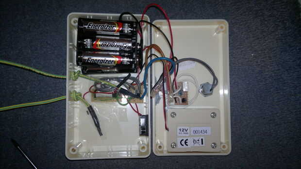 La alarma tiene que apagar por las llaves de contacto deben desactivarse como si el lazo es a conectar, la alarma seguirá sonido. Todo encaja en un cuadro pequeño proyecto que es siliconado en la parte posterior de uno de mis grupos como doble cara stickytape no fue hasta el trabajo de calor diario. Cada cable a las clavijas tiene alrededor de 1 metro de largo, de largo suficiente para envolver alrededor del panel de montaje pero no demasiado largo para conseguir en el camino mientras se mueven los paneles. Un microinterruptor pequeño forma parte del bucle que está montado en el cuadro de proyecto como un interruptor de sabotaje que sonará la alarma si la alarma es interferida. También incluí un pequeño parpadeo LED que se enciende automáticamente en la obscuridad para la alarma se activa. Este circuito es muy similar al circuito de alarma, simplemente reemplazar el zumbador con un parpadeo del LED, retire el relé y reemplazar las clavijas con un LDR.
