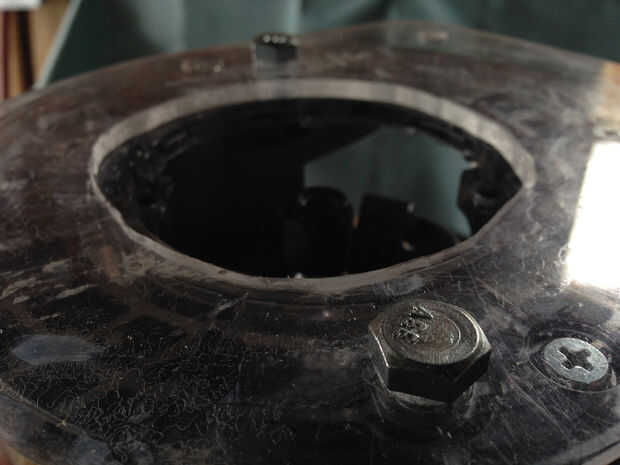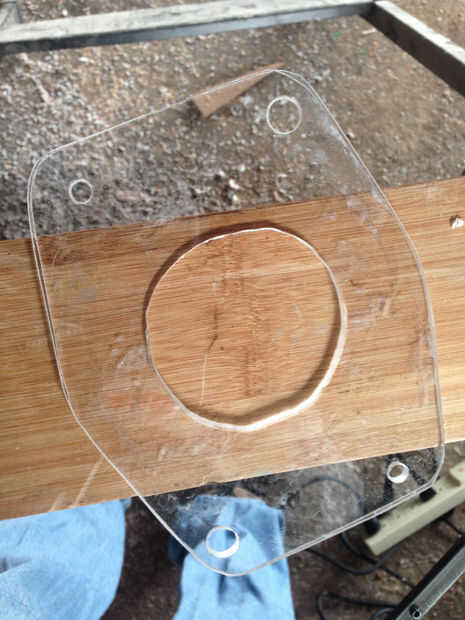 Como Nota general para esta build, recomiendo usar brocas forstner cuando son agujeros a través de su Lexan. Tuve la suerte de aprender esto durante el último paso en que taladró el agujero central. Cuando se utiliza una broca de taladro estándar, puede ser muy fácil de aplicar demasiada presión o torsión y grietas el acrílico. Encontré que los pedacitos de forstner parecen hacer este trabajo mucho mejor sin tener la posibilidad de agrietarse las recientemente mecanizadas placas acrílicas. Dicho esto, mantener un ojo en su pedacito de forstner durante la perforación, como encontré la necesidad de raspe cualquier acrílico que terminó acumulando en la punta de mi granito de arena. Este acrílico se calienta durante el proceso de perforación e invariablemente parece derretirse y seca en la punta de la broca forstner, como lo demuestra la foto de arriba. Tómese su tiempo con los pasos siguientes, como no quieres arruinar una de sus placas en el proceso de perforación apresuradamente el último agujero.