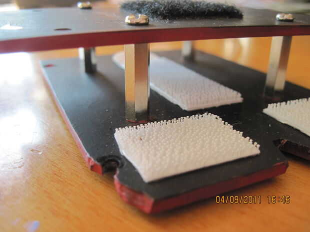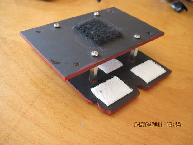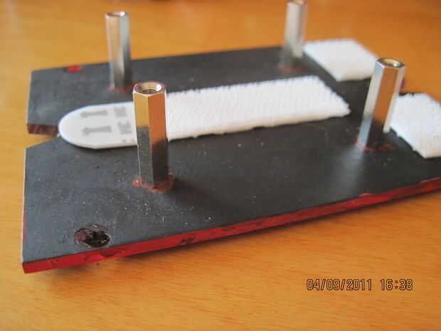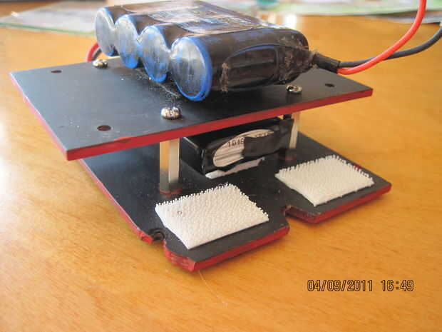 En mi robot de sumo que se vea genial quería y necesitaba un lugar para poner la batería de mi coche. así que hice mi robot con dos cubiertas. la cubierta inferior tiene la batería de mi coche y los dos receptores. también tiene agujeros para el alambre subir desde el controlador de motor de sabertooth. La cubierta superior tiene que Aran de mis dos servos y su batería así como la mayoría de los cables. la cubierta superior también tiene el controlador de motor que vamos a utilizar como un regulador de voltaje para los servos. las dos cubiertas son separadas por los 4 separadores de PC. Este diseño de la 2 cubierta realmente ayudar a todo lo hacer compacto que podamos mantener el tamaño. y además se ve cool. Para hacer las bandejas usé algunos hoja de acrílico que tenía ahí en mi sótano. la base inferior es el tamaño exacto como la parte superior de mi robot y todo lo hice fue poner mi robot en la hoja de remontar mi robot en él y recórtalo y arena así que ajusta perfectamente. Después había cortado y cabe perforé los orificios de la parte superior para atornillar en el chasis con 4 tornillos 4-40 X. Estos agujeros aparecen en el dibujo en el paso 2. Para pintar la cubierta inferior he utilizado un papel de lija y maltratados hasta la parte superior de la cubierta, así que la pintura tiene algo que ponerte. luego con alguna pintura acrílica había pintada la parte superior un plano negro y había pintado los lados rojo de la sangre. Pinté la parte superior lo mismo. para hacer la cubierta de la tapa coloqué mis dos servos y con mi batería de INSALUD de 1100mAh entre ellos en una hoja de acrílico y luego remontar pero luego les trazó esta vez añadiendo una media pulgada hacia el exterior para hacer el rastro mucho más grande. luego cortar el rastro más grande y lija a la medida. gran parte de la media pulgada extra en que la agregamos se cortará sólo para mantener el tamaño y peso hacia abajo. luego lo había lijado y había pintado igual que la cubierta inferior. en un paso posterior se perfore los agujeros para los soportes de PC y se monta el servo. la primera foto es la cubierta inferior y la segunda foto es la cubierta superior.