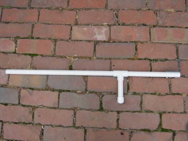 Una vez que tienes tus piezas de tres tubos, utilice la conexión en forma de T para sujetar algo que se asemeja a palillo de la noche de un policía. (Echa un vistazo a la foto de arriba, es lo que invariablemente ven niños de diez años en esta forma.)