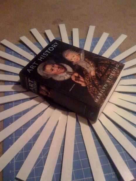 Una vez que tengas en la posición perfecta, coloque un objeto pesado sobre el espejo para asegurarse de que crea una buena adherencia. Usé mi viejo libro de historia de arte.