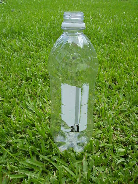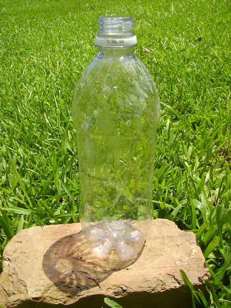 el otro día, era más de 100 grados, y la niña necesita diversión de verano. Un rociador de césped habría sido grande, pero no tengo uno. Me dirigía a la papelera de reciclaje y sacó una botella de refresco de 2 litros.En mi caja de piezas de fontaner