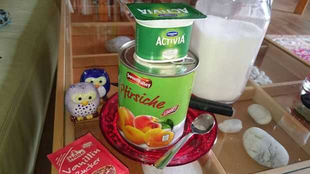 Todo lo que realmente necesitas para esto es algunos duraznos enlatados y yogur blanco.