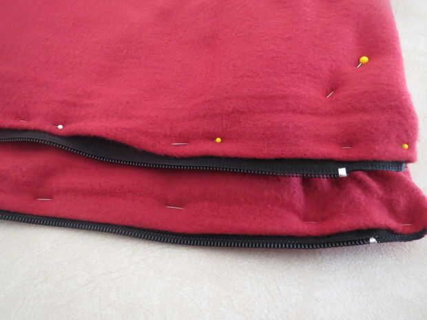OPCIONAL: También cosí una costura por el borde doblado que 3-4" de la tapa para distinguir el final abierto.