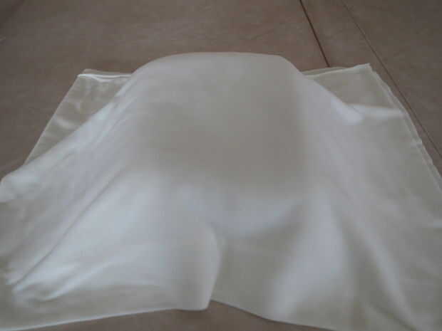 2. Coloque el paño grueso y suave de blanco sobre la parte superior de la bolsa para que tengas una idea general de cómo es grande la bolsa debe ser para montar la bolsa. (Necesitaba unos 30" cuadrado)