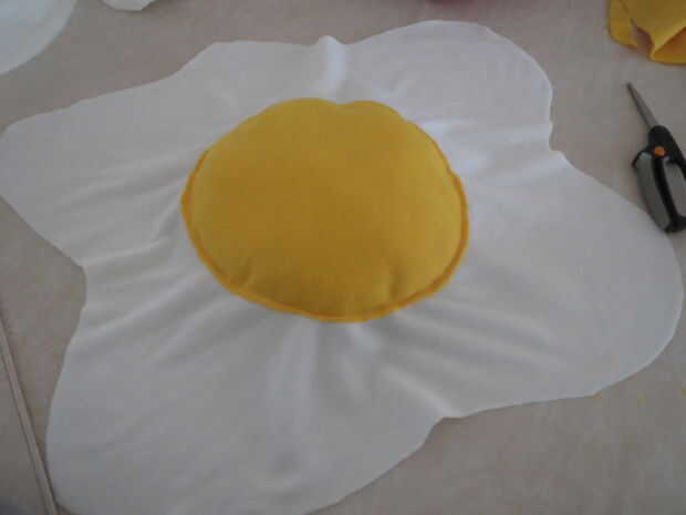 7. emparedado y coser juntos la pieza yema de huevo y la pieza de velcro para que la yema es de un lado y el velcro en el otro.