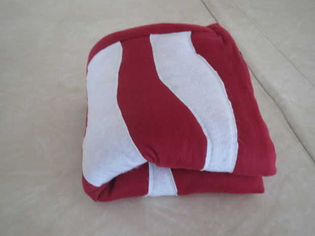Nota: Puede utilizar una cremallera en lugar de velcro como una opción. Elegí el velcro porque pensé que la cremallera puede ser incómoda en sus cabecitas. Usted tiene que mirar el velcro al deslizar en la bolsa de bacon, porque le gusta agarrarla un poco.