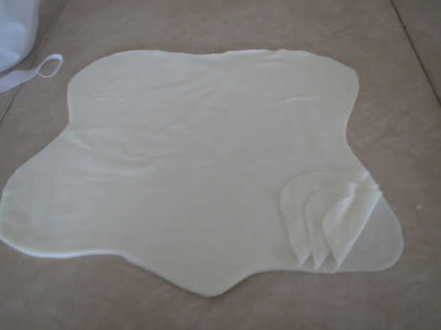 3. corte 4 copias de una forma ondulada, de claras de huevo, que es el tamaño aproximado necesario para cubrir el saco doblado.