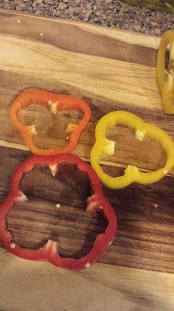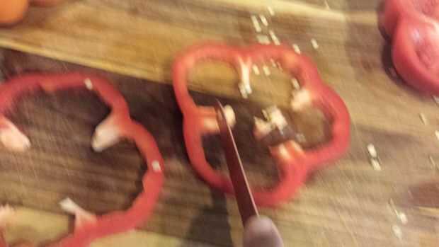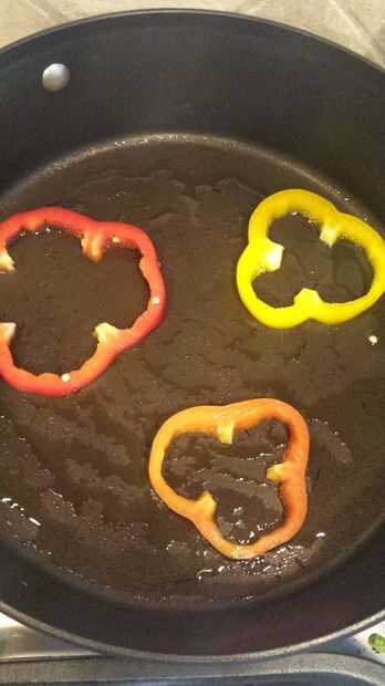 5. Cubra la cacerola durante 5 minutos con la tapa. Cuando hago esto el bellpepper levanta cocidos y así también el botton de la parte soleada.