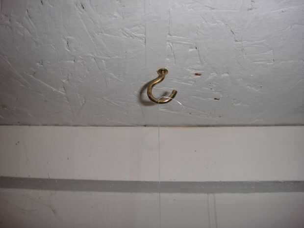 Inserte un gancho en el techo por encima de la estrella de puntas.  Sujete el otro extremo de la línea de pesca a este gancho.  Esto evitará la rotación de la pieza frontal.