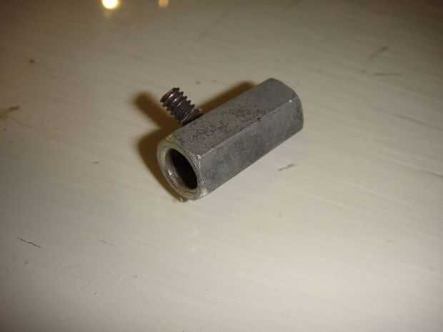 Esta es la pieza más dura.  Es acción roscado en el que perforó un agujero y había aprovechado un tornillo de ajuste.  Tenga en cuenta que el tornillo esté torcido (no intencional, solo mi falta de capacidad cuando se trabaja con acero).