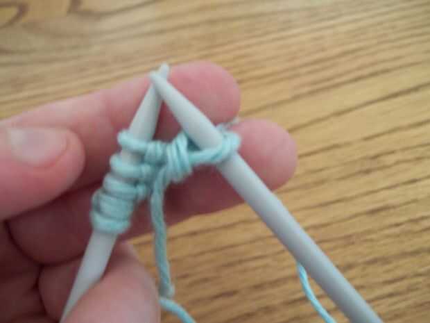 SL 1: Introduzca la aguja en punto como si se va a lo de punto pero en vez de tejer sólo resbalón a la aguja derecha.