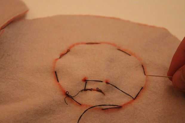 Siga el círculo dibujó con una puntada corriente floja (más cerca juntos tus puntadas mejor el acabado, pero más difícil la puntada va a tensar)