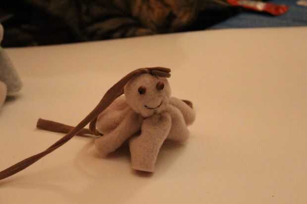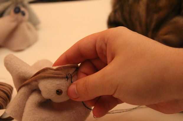 Os adjunto a mis fantasmas por coser a través de una longitud de cable en la parte superior de la cabeza fantasmas y poner en un par de puntadas.