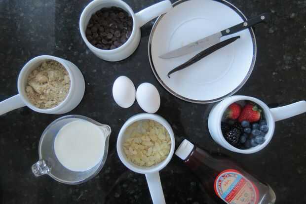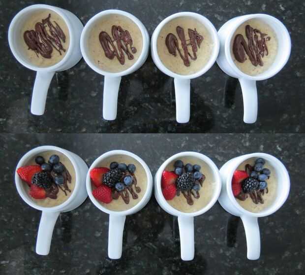 6. decorar con chocolate negro derretido, bayas y almendras rebanadas.