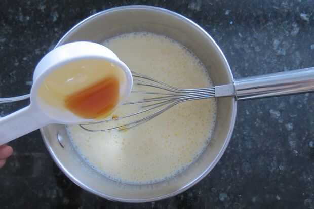 4. sobre fuego medio, llevar la mezcla a ebullición, removiendo continuamente para evitar que se queme la leche. Cuando la mezcla haya espesado, retirar del fuego.