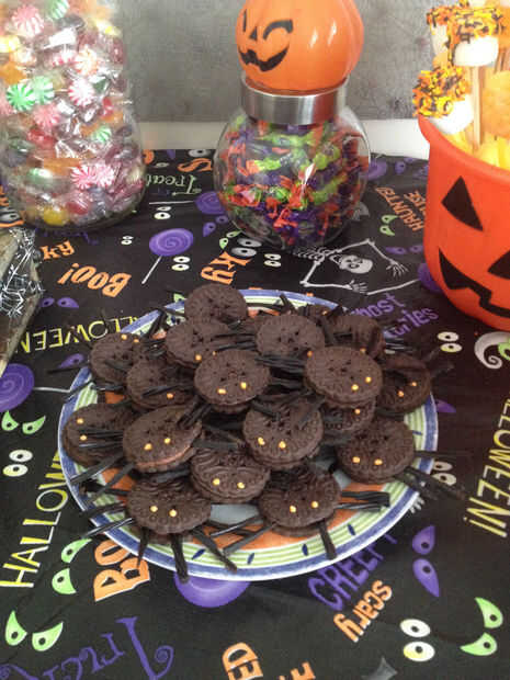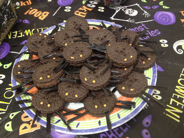 Oblea chocolate naranja derretida de la pipa y tus galletas de araña están listas para ir :)