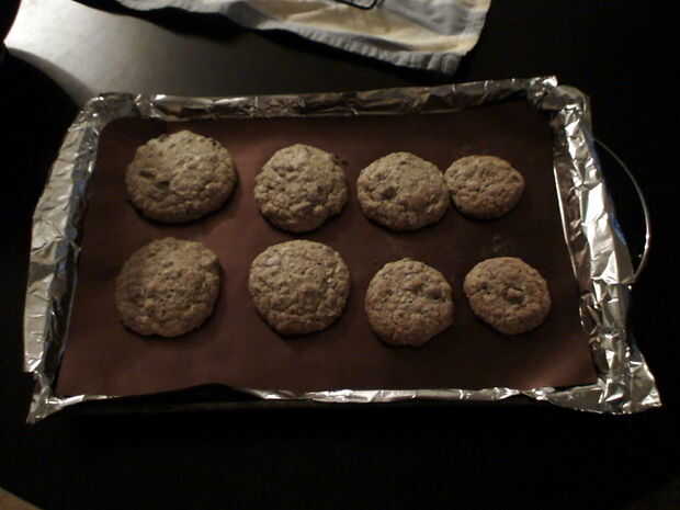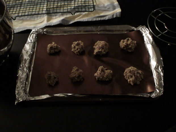 Para el tercer lote, vamos más pequeños. Hacer 4 galletas un poco bajo ¾" de diámetro y otros cuatro de ½" de diámetro. Este lote sólo se hornea durante 9 minutos (8 en un horno de convección), porque las pequeñas galletas hornee más rápido.