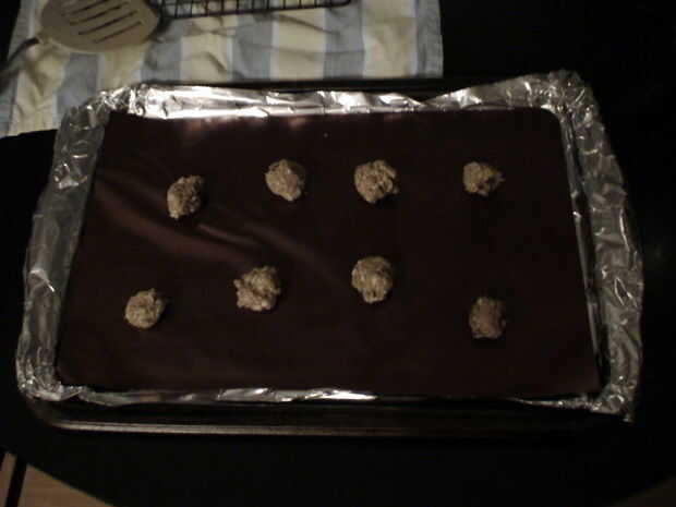 En mi bandeja tengo un papel de aluminio y una placa para horno de silicona antiadherente. Esto ayuda con la eliminación de cookies y limpieza. Si no tienes esto, considere una capa ligera de aceite para evitar que se pegue.