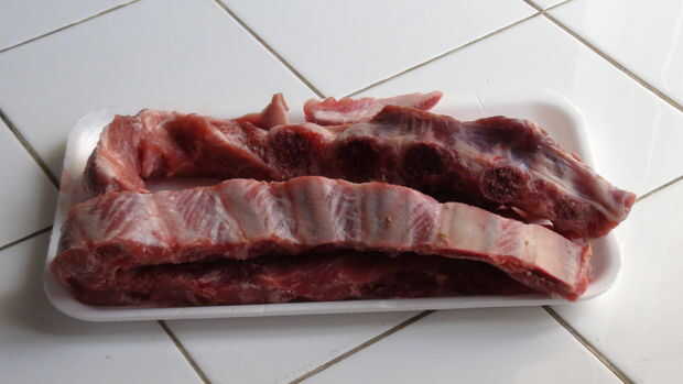 • Un libra y medio de costillas de cerdo. Pregunte a la tienda de cortarlos en trozos de 1½ pulgadas en el hueso para usted.