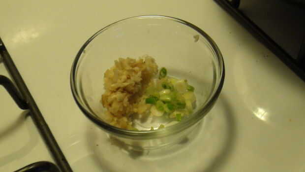 Picar el ajo, jengibre y la mayoría de las cebollas verdes; colóquelos a un lado. También picar por separado el resto de la cebolla verde para guarnición al final.