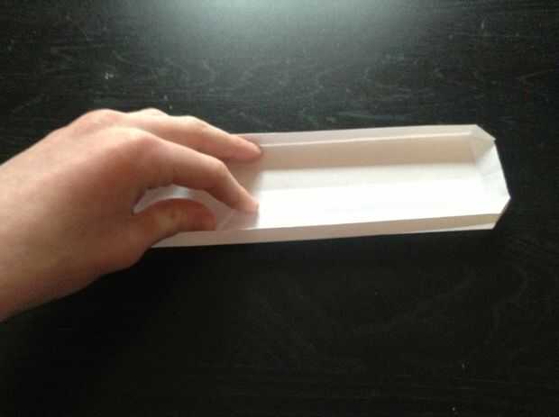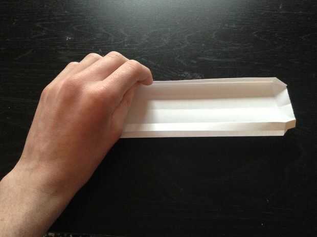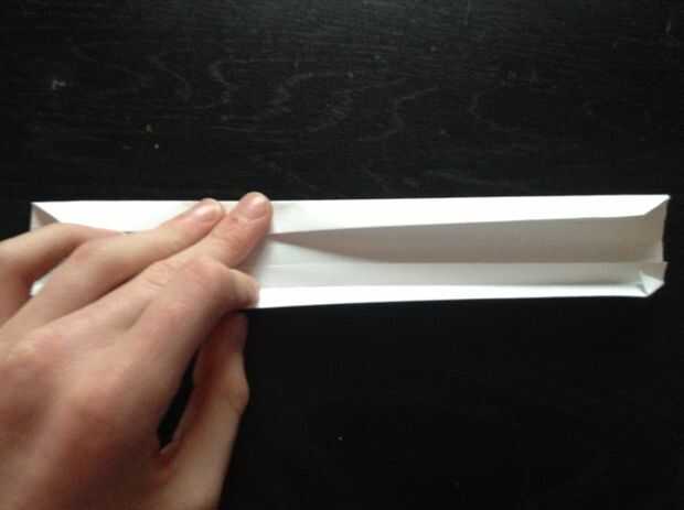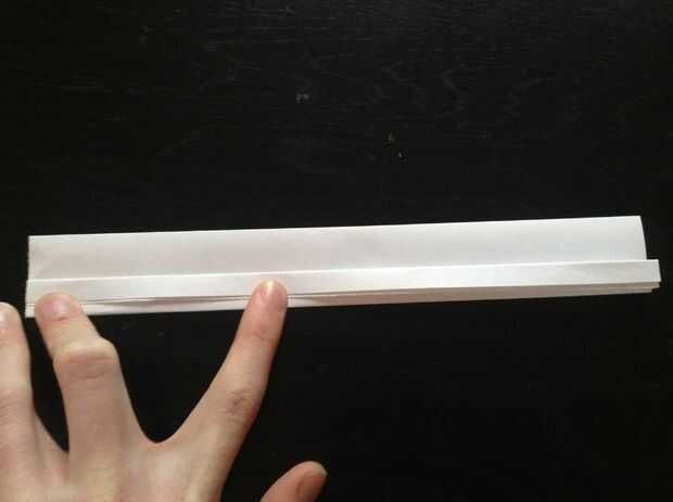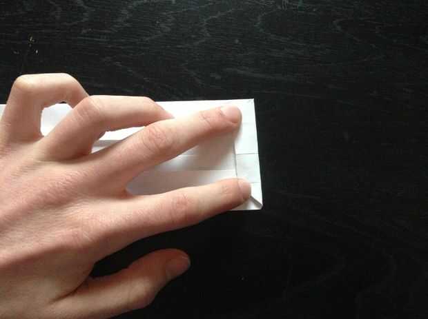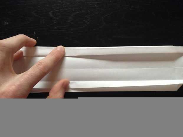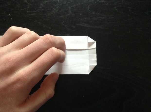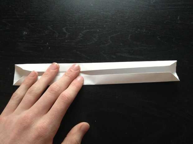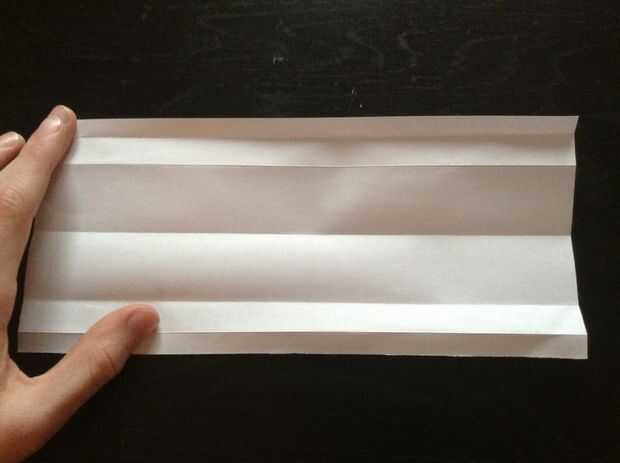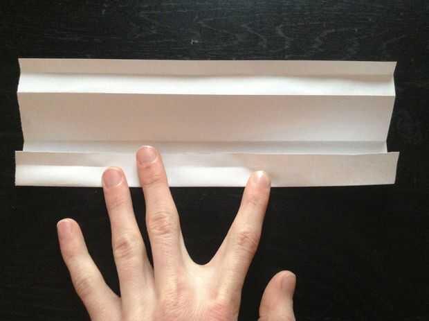 5) ahora doblar ese borde otra vez, y un poco más que el anterior. Ahora despliegue la hoja entera.