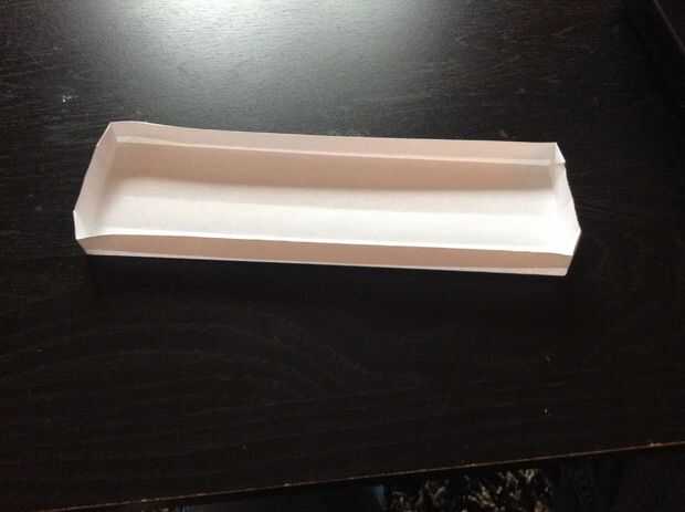 3) doblar la pieza por la mitad a lo largo del lado largo (estilo del perro caliente), luego Dale la vuelta para que la parte abierta quede frente a usted.