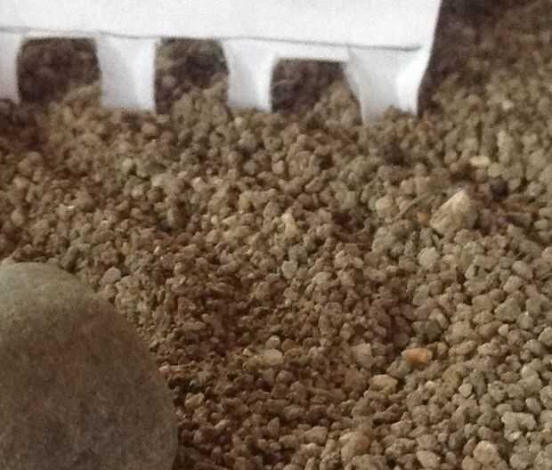 Después de que mi tierra era seca, corrí por un colador para obtener los guijarros más grandes hacia fuera y luego por un colador de malla pequeña para obtener la suciedad pequeña. Esta suciedad es lo suficientemente pequeña como para que el rastrillo de papel puede manipularlo.